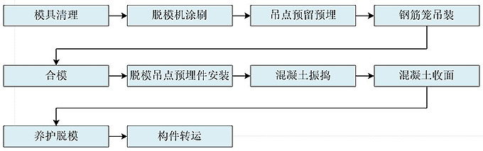 預制樓梯采用定制模具進行生產,生產流程如下: